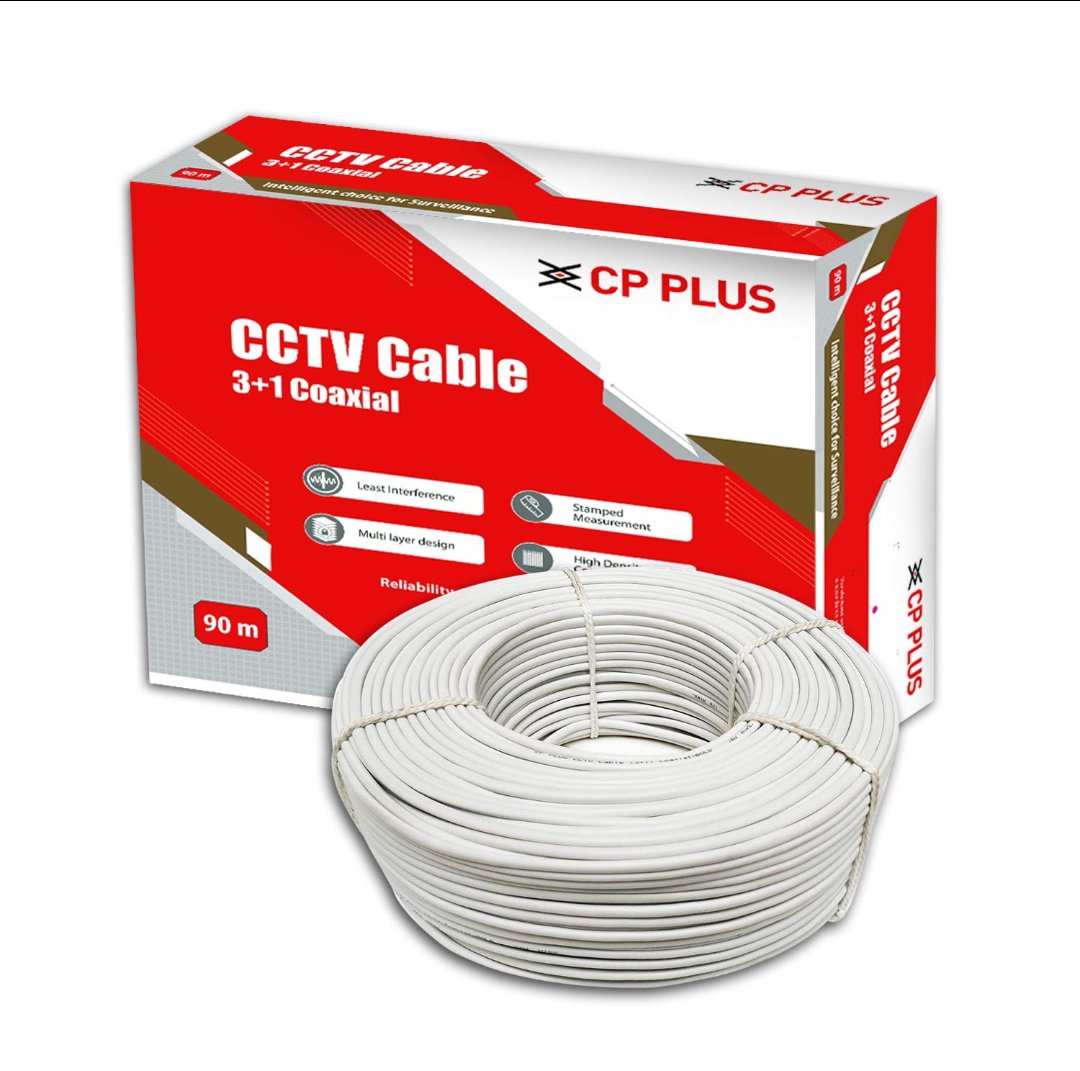 CP PLUS 3+1 Coaxial Pure Copper CCTV Camera Cable (90 Meter) (White Color)